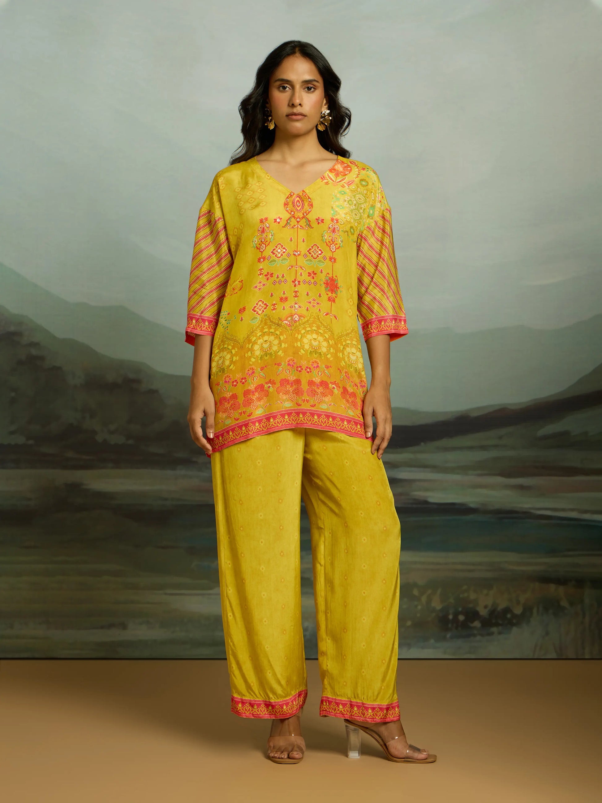 Pure crepe co-ord set featuring fine digital prints and a relaxed, slightly oversized silhouette.